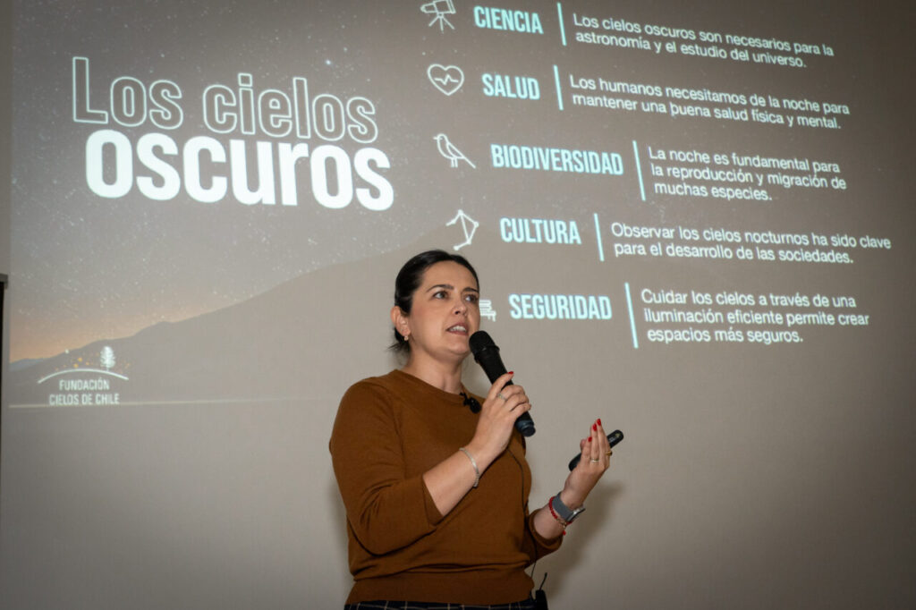 Daniela González, directora ejecutiva de la Fundación Cielos de Chile, señaló que “siempre que hablamos de contaminación lumínica hablamos de gasto: luz innecesaria, indeseada o que no está cumpliendo ningún propósito, por lo tanto, siempre es un desperdicio”.