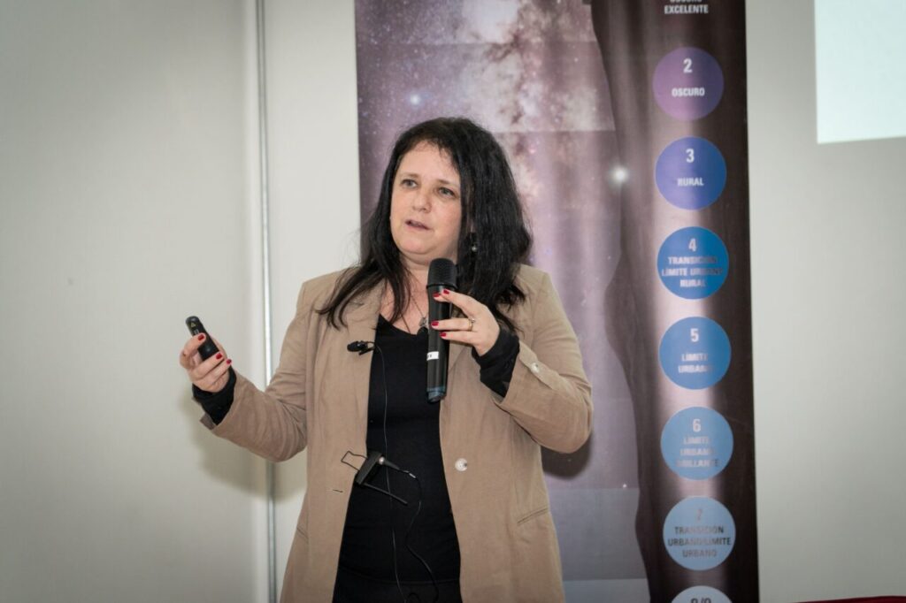 La arquitecta llamó a reconocer la oscuridad como una necesidad para el descanso y la salud y emplear una iluminación responsable, que privilegie la visibilidad y prescinda de la iluminación innecesaria, que degrada el paisaje nocturno.