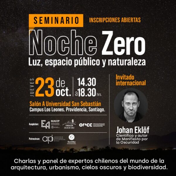 El evento, convocado por Fundación Cielos de Chile, se realizará el 23 de octubre en Santiago con la presencia del científico sueco Johan Eklöf, autor del aclamado libro Manifiesto por la Oscuridad, y de expertos chilenos del mundo de la arquitectura, urbanismo, cielos oscuros y naturaleza.